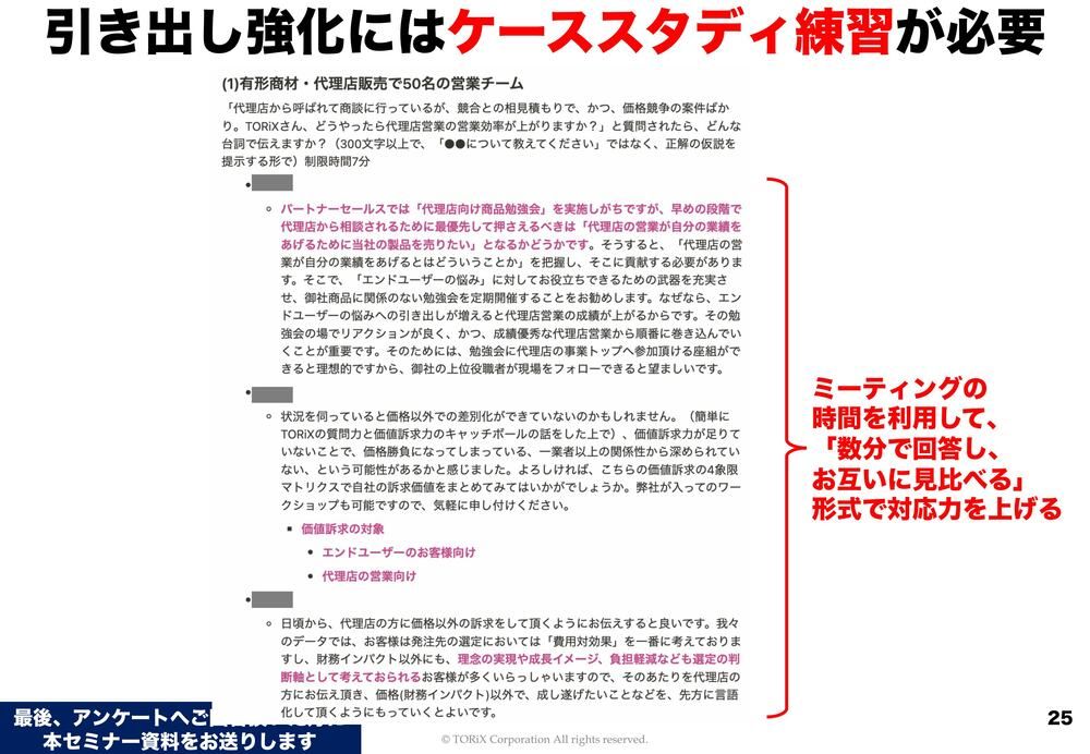 そして、考える力を強化したいという時におすすめなのがケーススタディ練習です。これは私も、自分の会社で定例ミーティングにちょこちょこ入れて実施するんですが、例えばこんな感じでお題を設定します。