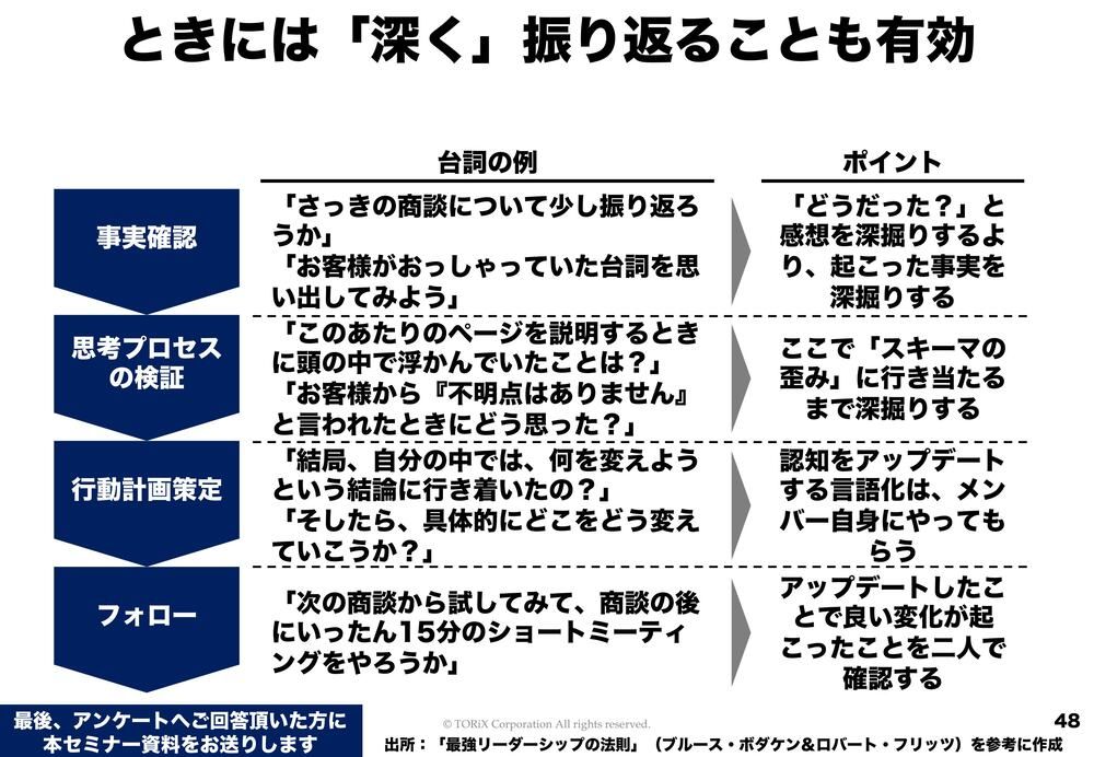 ということで、実は時には深く振り返ることも有効なので、これもちょっと触れておきたいと思います。「深く振り返る」とはどういうことか。
