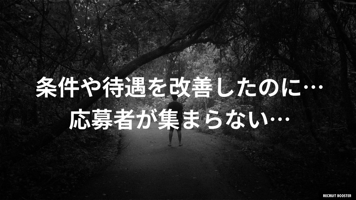 では、具体の内容に入っていきたいと思います。(スライドを示して)こういった内容ですね。求人票での条件や待遇を自分たちなりに改善したんですが、なかなか応募者が集まらないですよと。あとは、せっかく内定を出しても辞退されてしまう。よくありますよね。