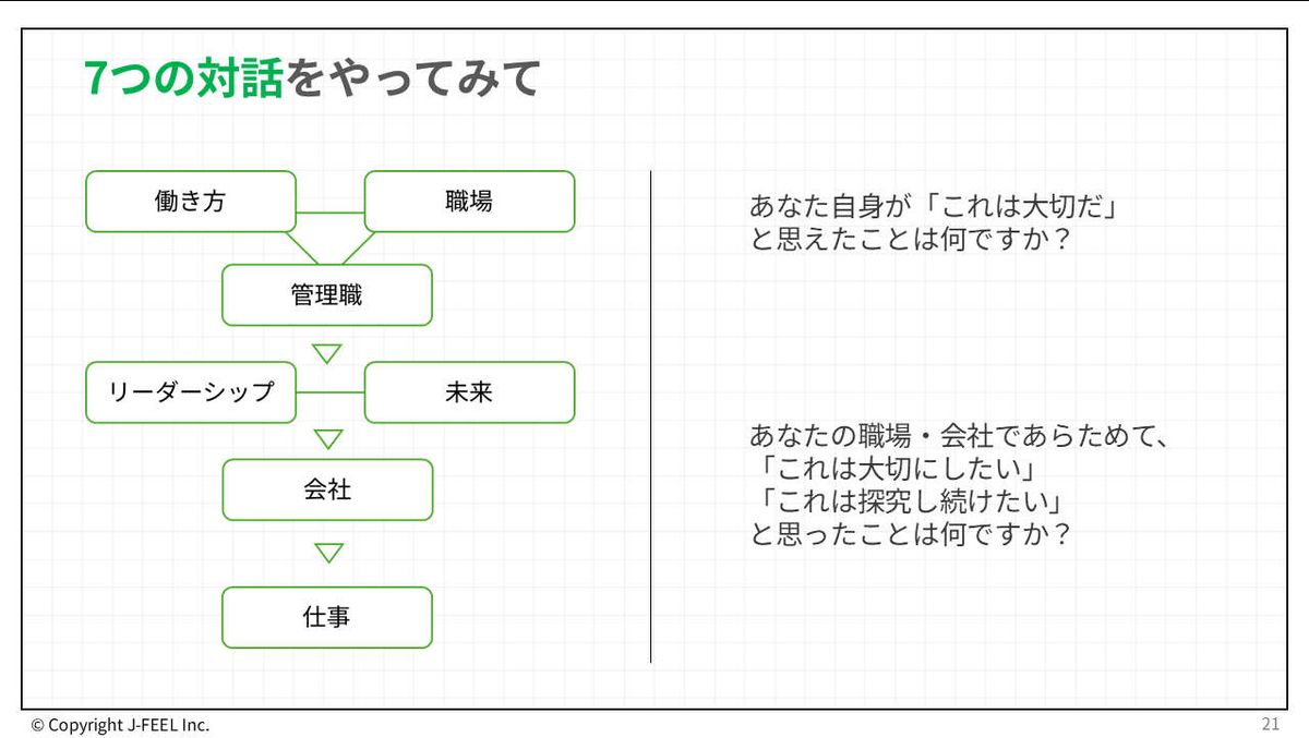 こうした、今なんとなく行き詰まっているようなことや、スタンスが違っているがゆえに、正面から向き合えていないテーマに対して、「ちゃんと向き合ってみませんか」という投げかけをしながら、対話をしていく。その時間を、ぜひつくっていただけたらいいなと思っています。