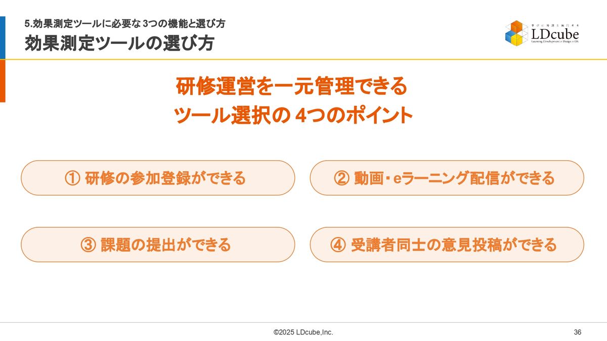 ・研修担当者は単なるデータ収集だけでなく、収集したデータを分析して次の研修に活かすという視点でツール選定を行うことが求められています。