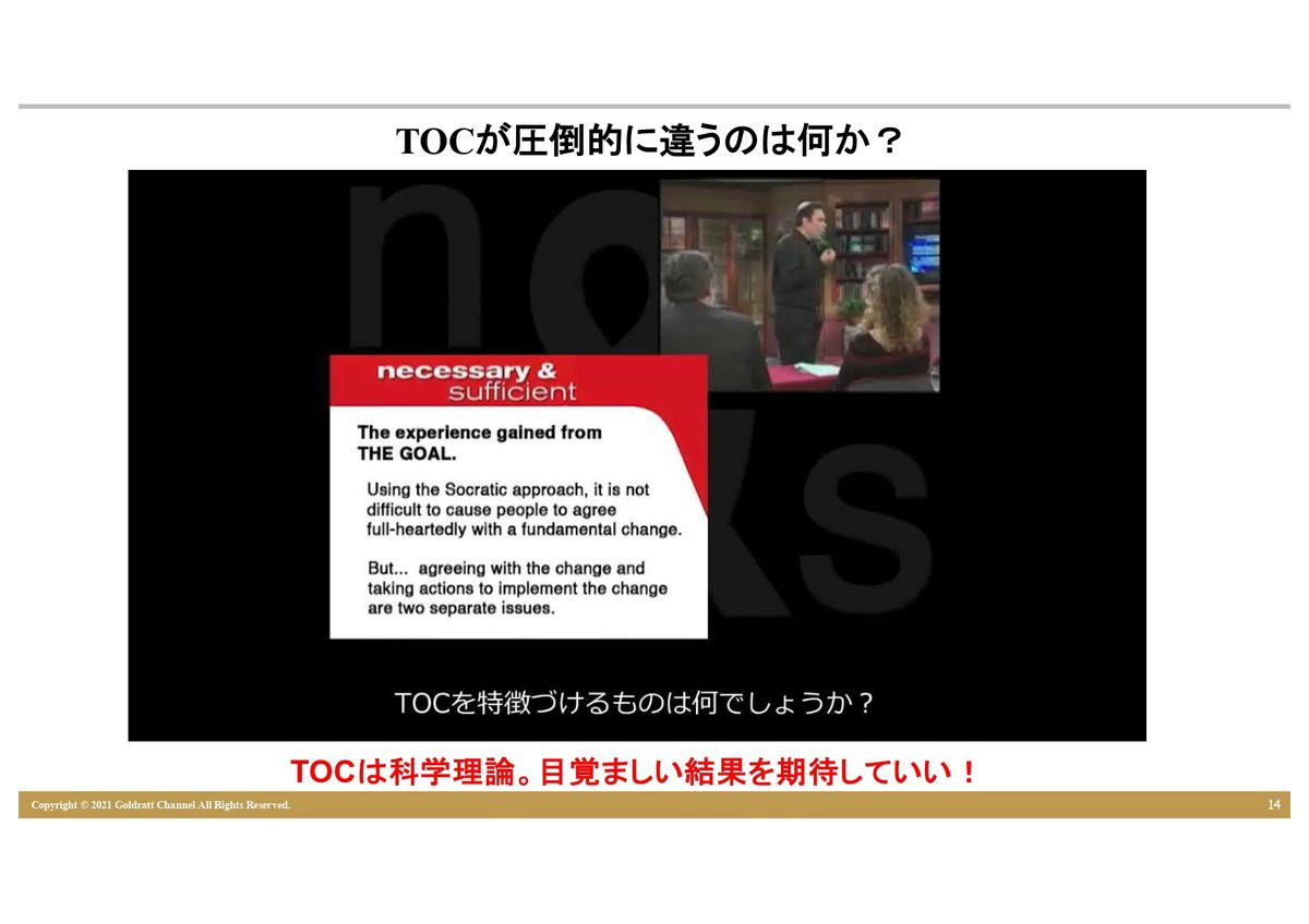どうですか? こうなるとTOCは科学において予測することができる、そして再現可能な、今のところ40年間ずっと立証され続けている理論と言えませんか? これが(ほかのマネジメント手法と)TOCの大きな違いだというところなんです。