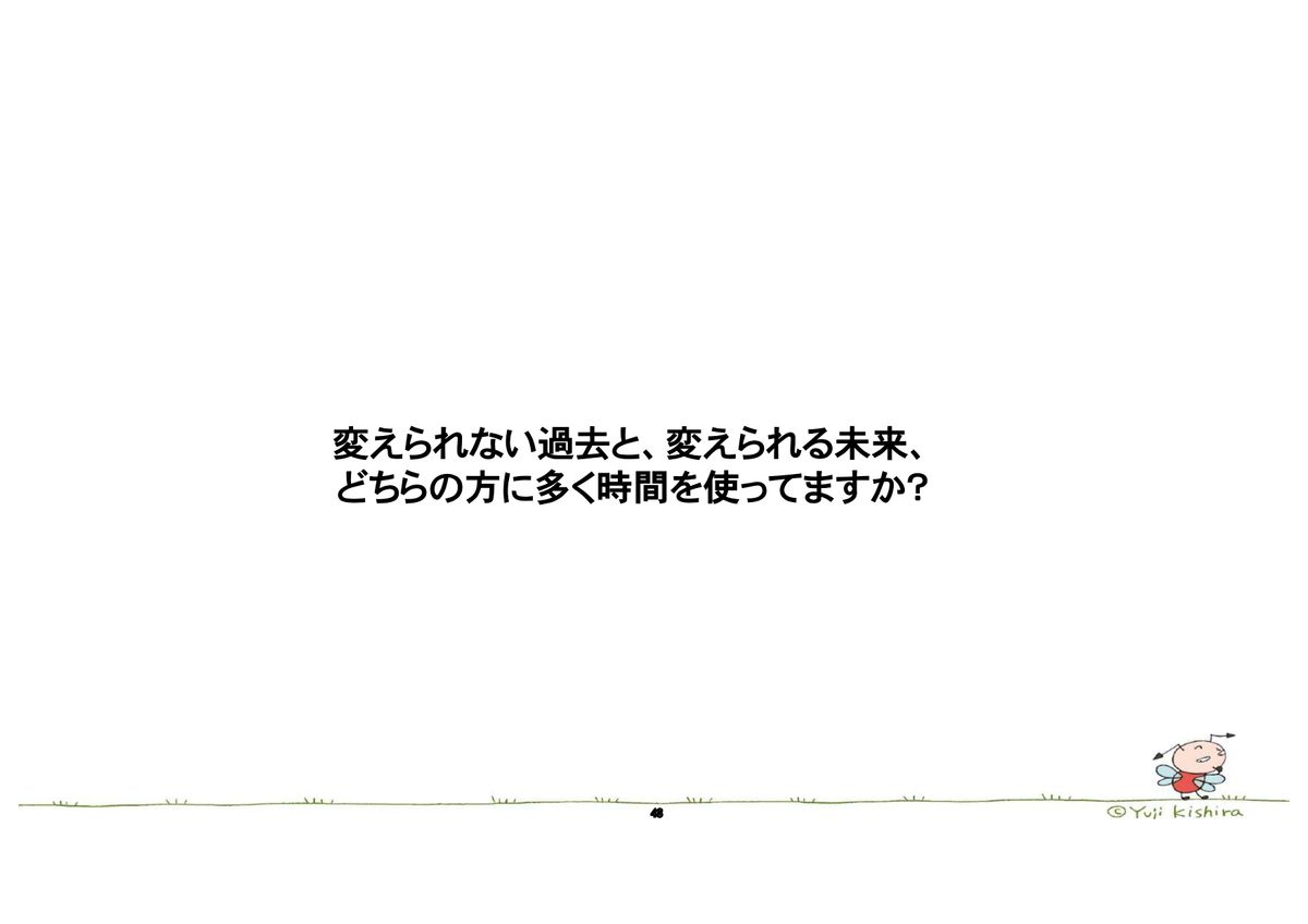 「変えられない過去」と「変えられる未来」、みなさんどっちのほうに多くの時間を使っているでしょう。もし「変えられない過去」に使っているんだったら、伸びしろは大きいということになります。