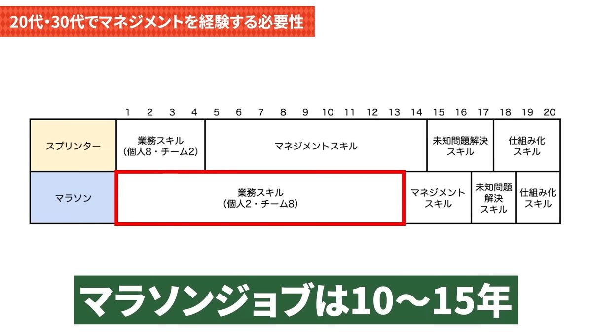 プレイヤーの成果ってやはり上限があるんですよね。プレイヤーの成果は、過去の動画で説明していましたよね。スプリンタージョブだった場合は3~4年ぐらい、マラソンジョブだったら10年とか15年ぐらいで、プレイヤーの成果って上限に当たっちゃいます。
