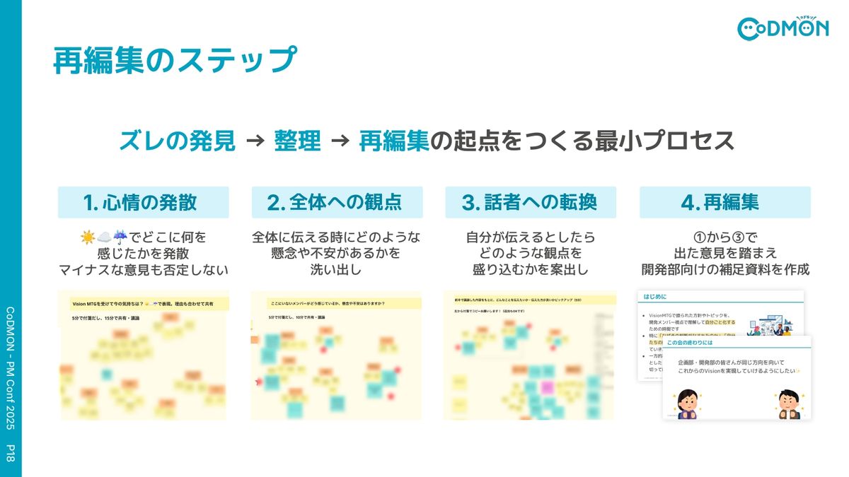 ・コドモン社では「どこにズレがあるか」を発見する読み合わせから始め、疑問や違和感を安全に共有できる場づくりを重視した戦略浸透に 取り組んでいます。