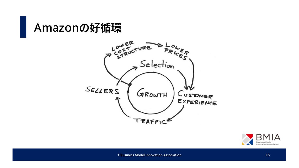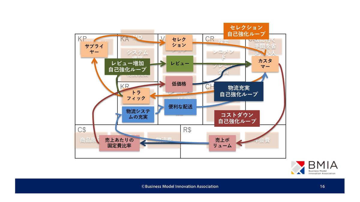 さらにそれによってコストストラクチャー、要はバイイングパワーがついて、安く提供できる。こういう循環が生まれているというのが説明になるわけです。これは、実はシステム思考というものにちょっと関連するんですけれども。ビジネスモデルの中にこのループを書いていくと、さらにつながりが見えてくる。