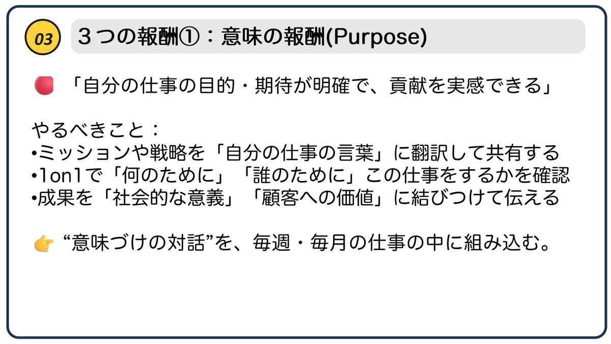 やはり、意味の報酬、関係の報酬、成長の報酬。この次のページに……。