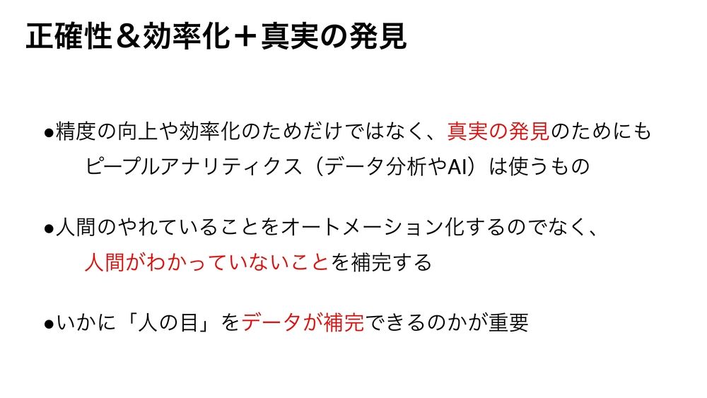 そのような正確性と効率化を求めて、このピープル・アナリティクスとかデータ、AIを使った人事をやっていくというのが、あるわけなんです。もう1つの側面というのも期待されていますね。
