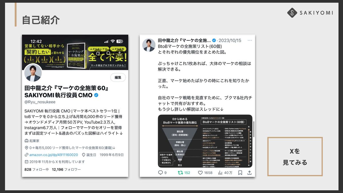 また、BtoBマーケを調べている方の中には、もしかしたら僕の情報をX(旧Twitter)で見たことがある方もいらっしゃるかもしれません。