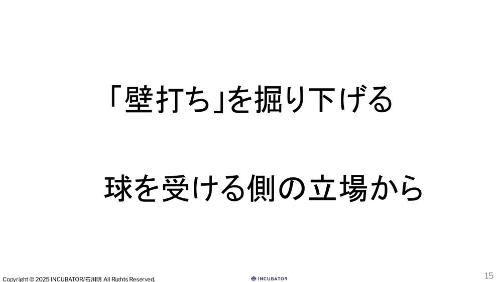 そればっかりで良い壁になれるかというと、やはり実はその手前で、「この人はちゃんと話を聞いてくれそうだな」とか。(壁打ちは)自分の弱みをある種さらけ出すようなところもあるから、「あいつ、この間こんな変なことを言っていたよ」なんてほかのところで言われたらたまったもんじゃないので(笑)。