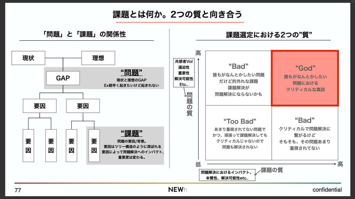 新規事業開発においては課題もすごく重要ですが、そもそも自分たちが向き合っている「問題」そのものが、どれだけ大きなインパクトを持っているのかをきちんと見極める必要があります。