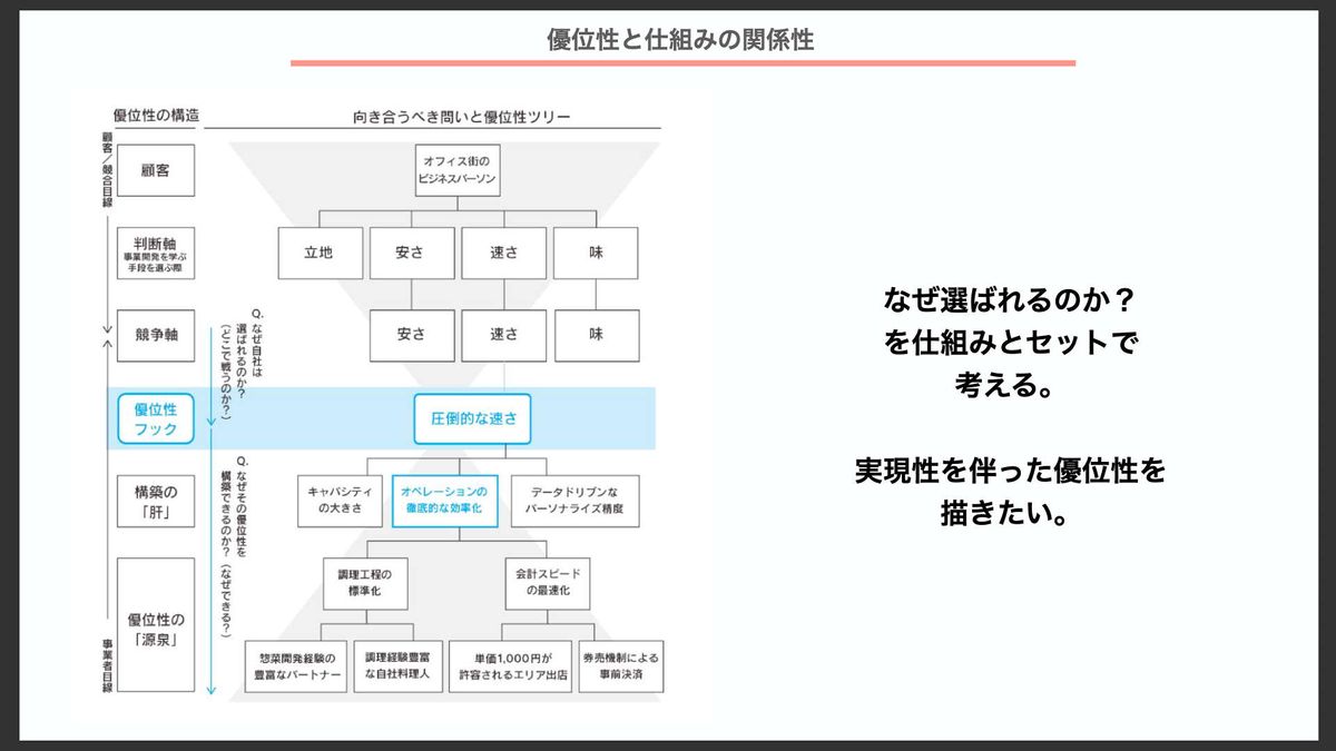 そのうえで、「私たちはどこで勝負するのか」を明確にする。どの軸で突き抜けるのかという意志を持つことが、優位性の設計においては非常に重要だと思います。