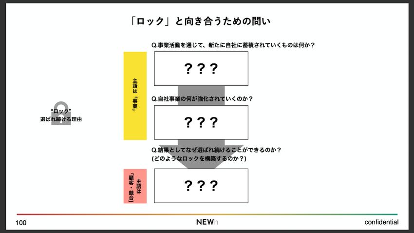 続いて、ロックについてです。こちらも同様に、事業活動を通じて蓄積されていくものが、ちゃんとロックにつながっているのかという視点を持つ必要があります。