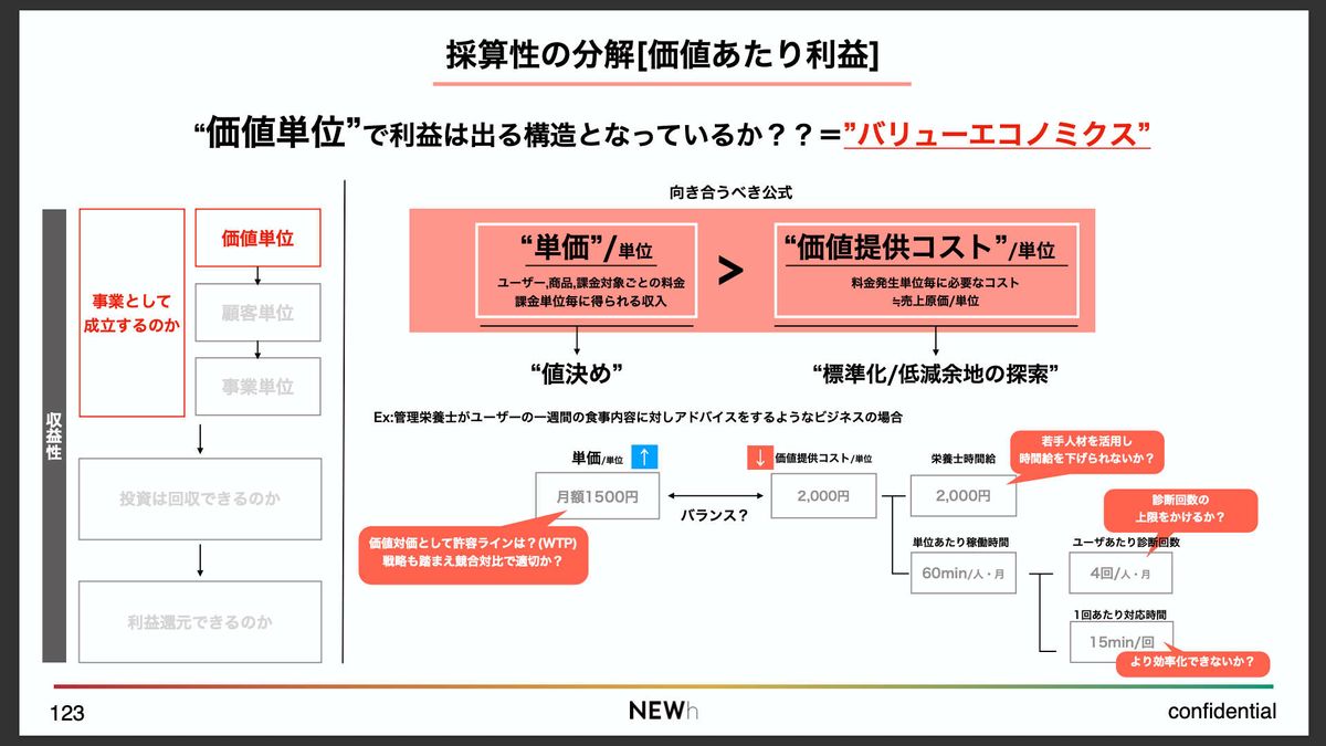 時間にも限りがありますので、ここでは一番ミクロなレイヤーでの採算性について、「バリューエコノミクス」という考え方をご紹介したいと思います。