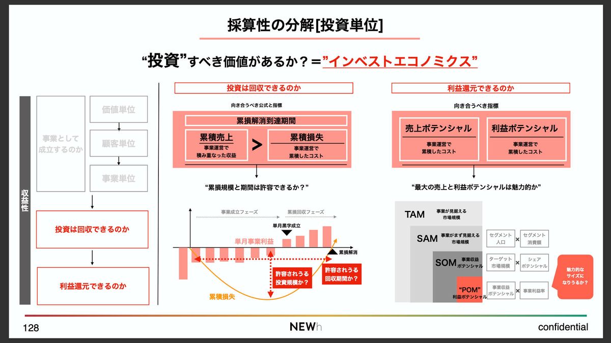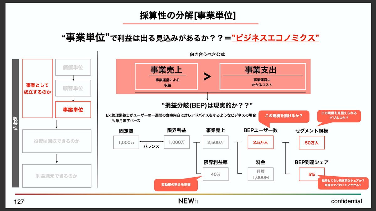 最終的には、利益がどれくらい出るのかとか、NPV(正味現在価値)的に投資が回収できるのかというファイナンス領域に踏み込んでいくんですけど、その前段階として、「事業としてPLベースで成立するのか」というところがある。