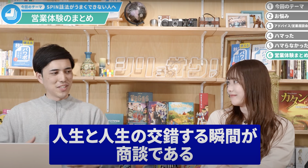 久保田:SPIN話法をできる・できないは、そもそも大前提のお話だったりとか、主語を大きくすると「人生」とか。
