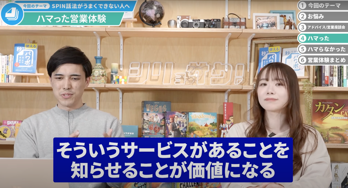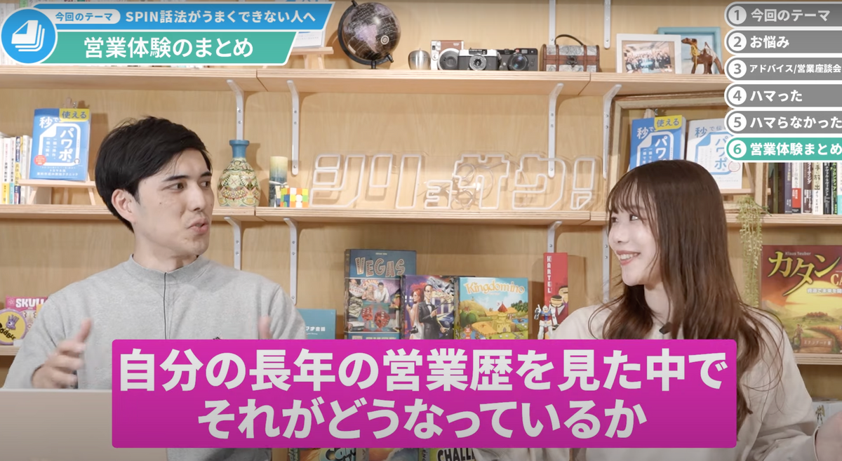 久保田:SPINないしは、「営業体験としてすごく良かったな」とか、「これは知らなかったけど、気づかされたな」というものはありますか?