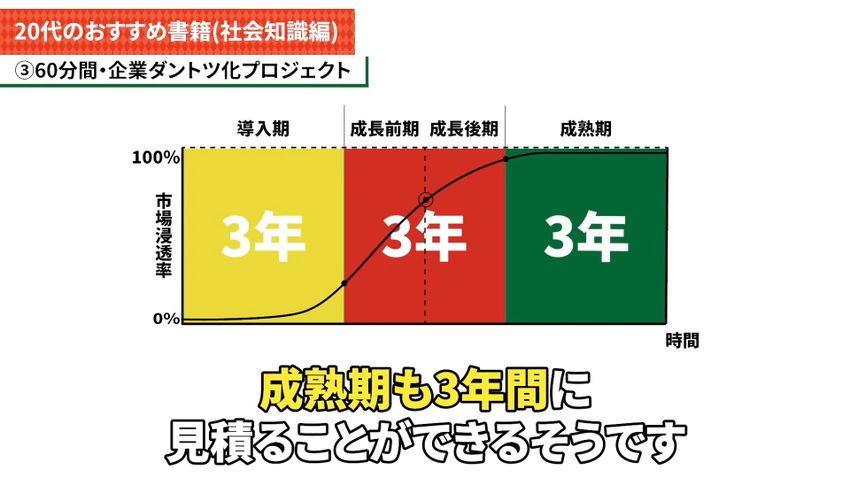 ここの期間が、まず導入期の期間になります。「3年ぐらい前に参入して、そこから3年ぐらい経ってから成長期になったよね。ということは導入期は3年ですよね」という話ですよね。ということは、次に成長期も3年ぐらい続くということになります。