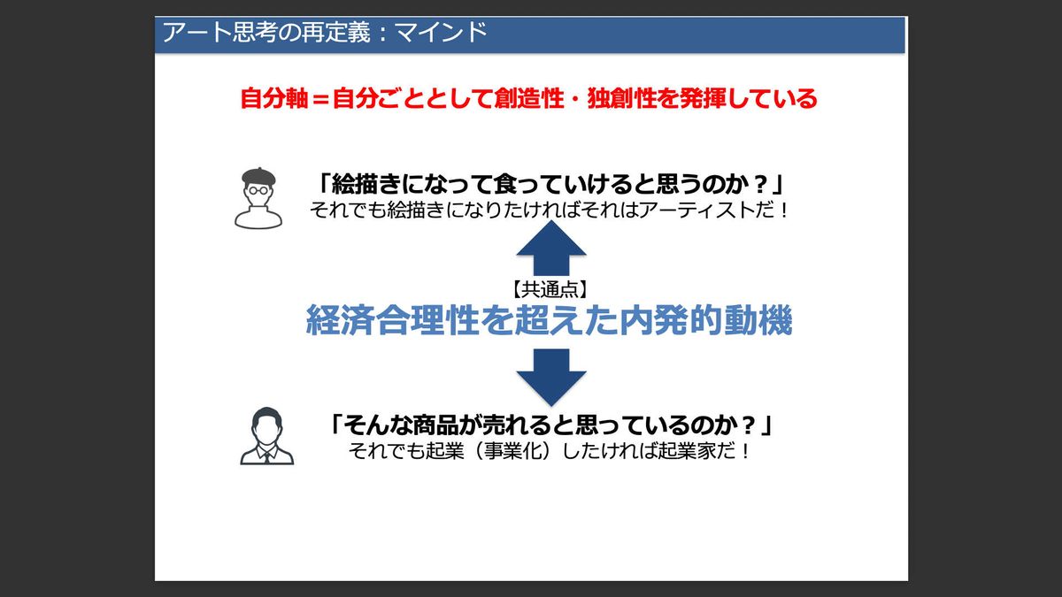 ということで、私はこの本の中でアート思考について、新たな視点から定義し直しています。これは私個人の定義ですが、自分自身がアート思考を自然と使っていたことに後から気づき、それを体系化したものです。