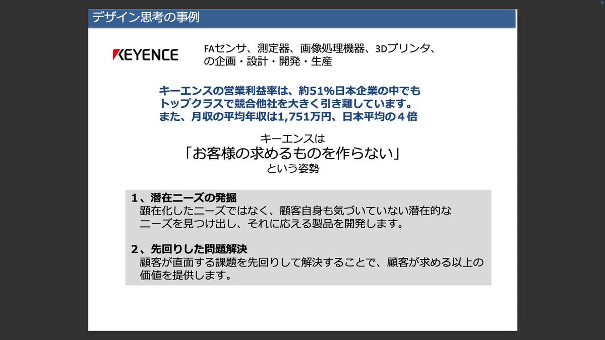 私がキーエンスに関する本を読んだ時に、「お客さんの求めるものを作らないという姿勢がある」と書かれていました。先ほど私は「お客さんの求めるものを作るのがデザイン思考だ」とお話ししましたが、一見すると矛盾しているように思えるかもしれません。
