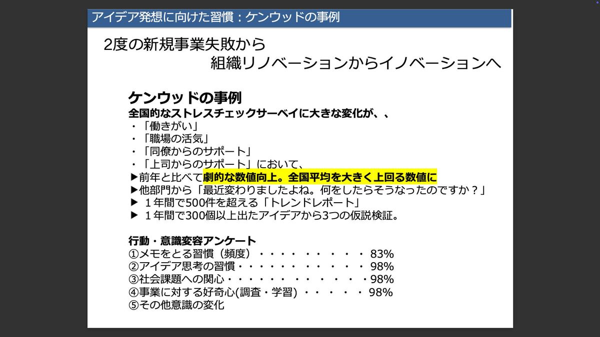 ケンウッドさんでは、まず「アイデアを生む」というよりも、その前提として「アイデアを生む人たちがどんな環境にあるか」ということから始めました。