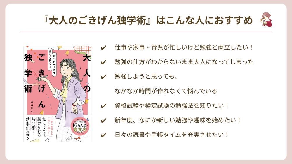 忙しい大人でも自分のペースで勉強を続けるコツ 『大人のごきげん独学術』著者・みおりん氏が語る学びのヒント