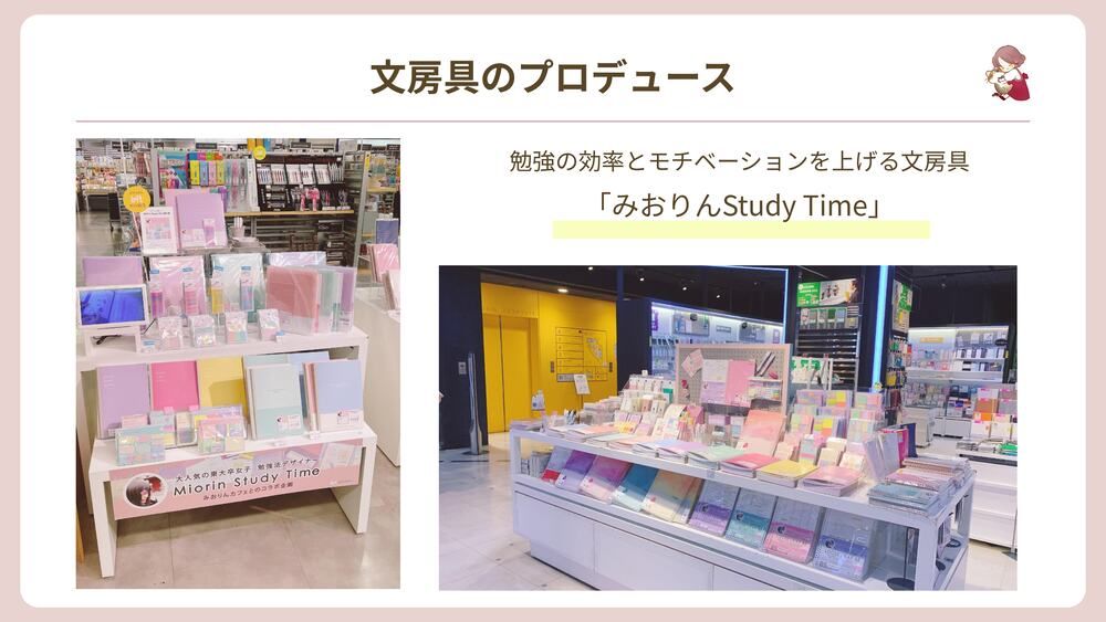 みおりん:そうですね。「象が踏んでも壊れない筆箱」で有名な文具メーカーのサンスター文具さんとのコラボで、勉強の効率やモチベーションを上げてくれる文房具ということで、「みおりんStudy Time」という文房具シリーズを作らせていただいています。