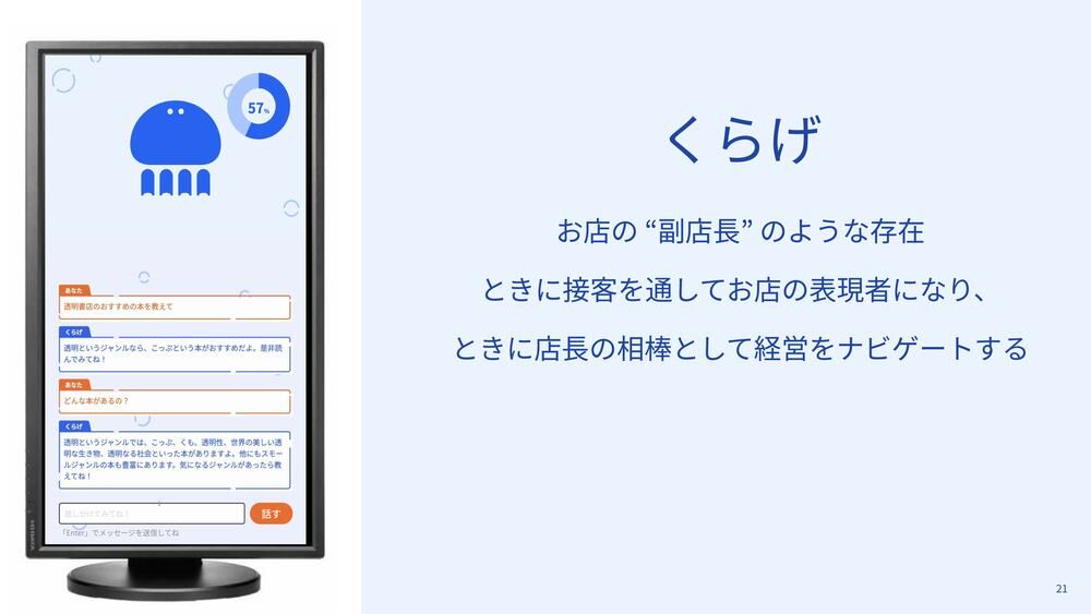マスコットキャラかつ副店長であるくらげのAIもあったりします。