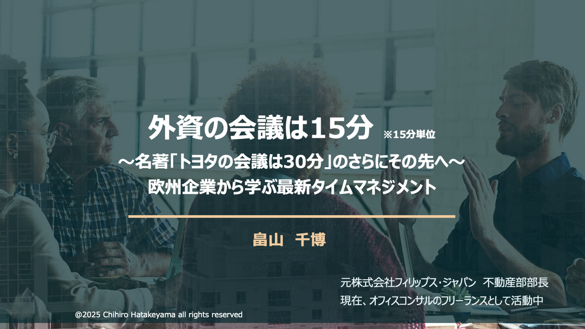 2021年に『トヨタの会議は30分 ~GAFAMやBATHにも負けない最速・骨太のビジネスコミュニケーション術』という本が大ベストセラーになりました。「30分単位で会議をするのはすごいな」という話になったんですが、本日はそのさらに先にいくかたちで、15分単位で効率的に進める欧州流のタイムマネジメントについて学んでいただく回になっております。