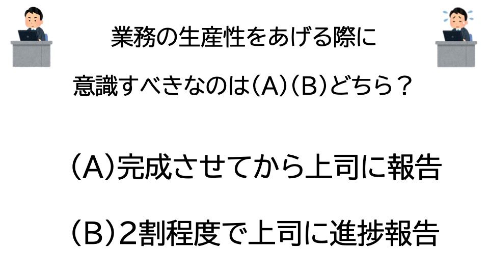 じゃあ次に、業務の生産性を上げる際に意識するべきなのはA・Bどっち?