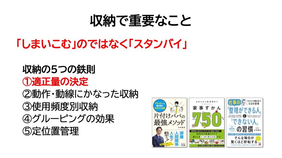 【3行要約】 ・「片付けパパ」として活動する大村信夫氏は整理収納の鉄則として「適正量の決定」を挙げ、時間管理でも同様の考え方が有効と説明します。
