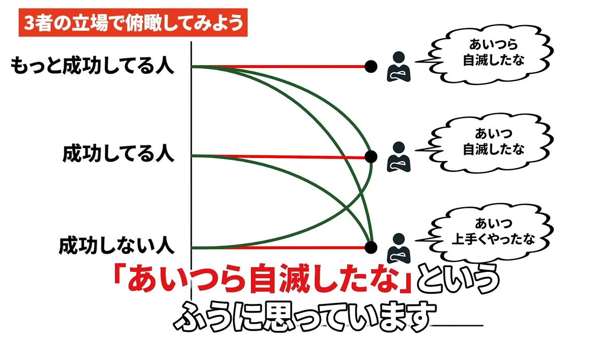 成功している人は自分が成功していて他人が成功していないんじゃなくて、自分が普通で相手が勝手に自滅しているというふうに見えているんですね。