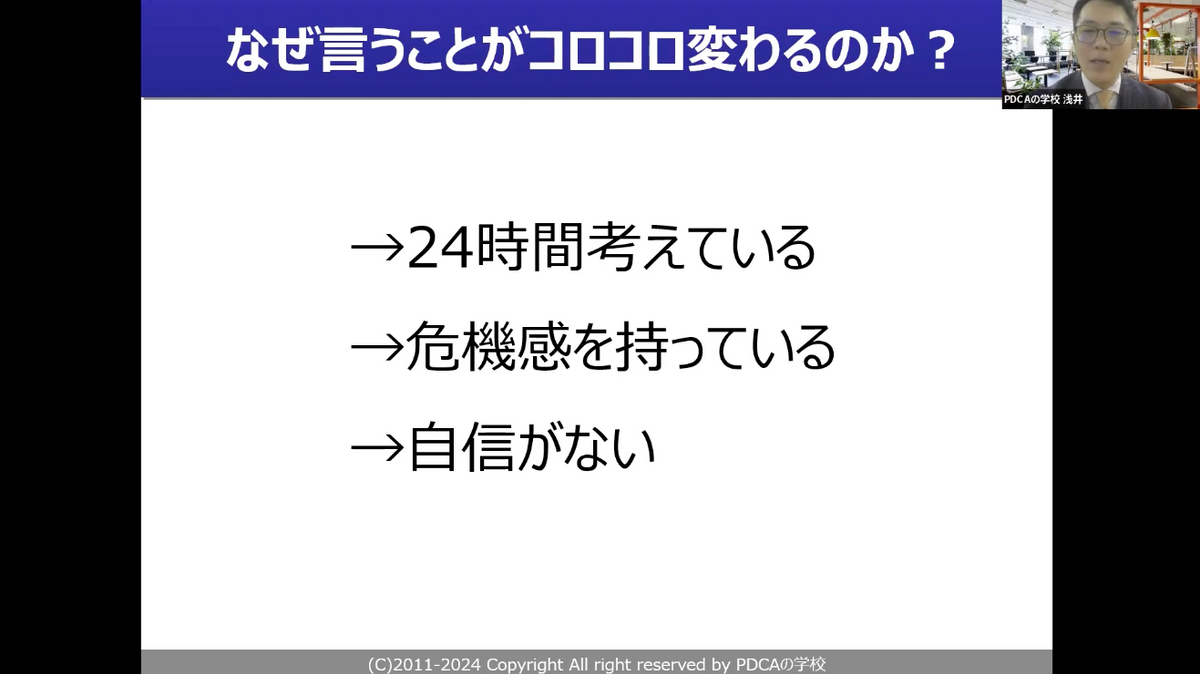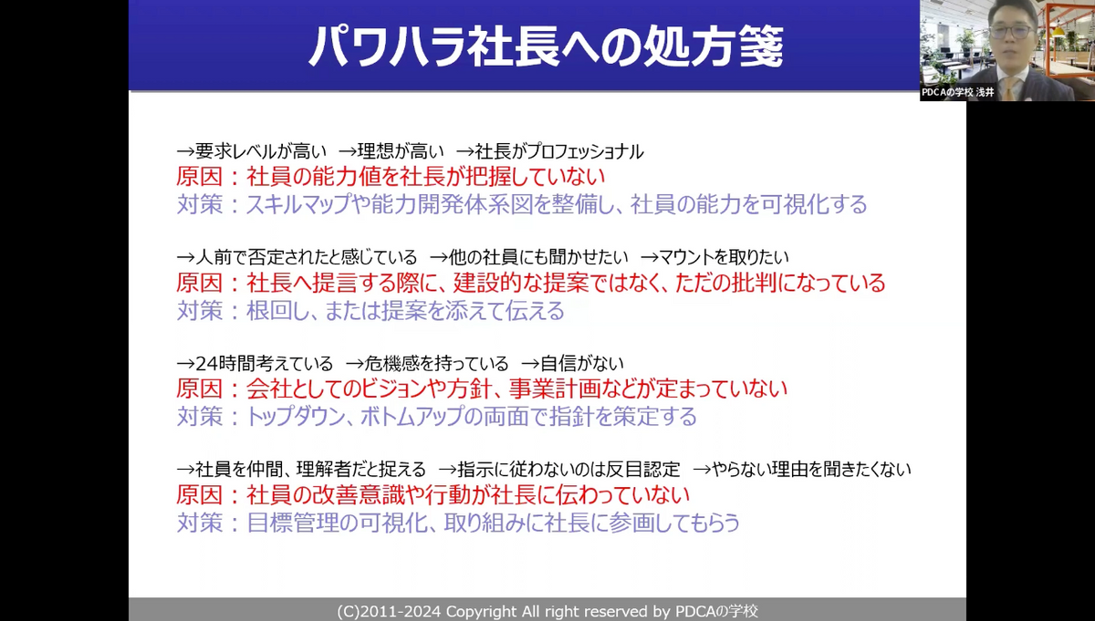 感情的になったり、ちょっと強めに表現してしまったり、いろんな意見がコロコロ変わる社長の根底的なところを押さえていただきますと、対策が見えてくるということですね。