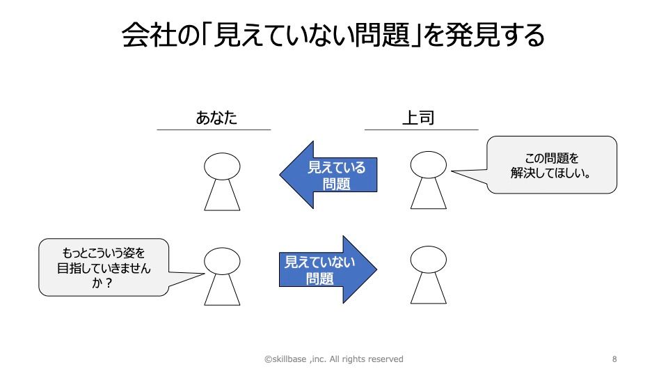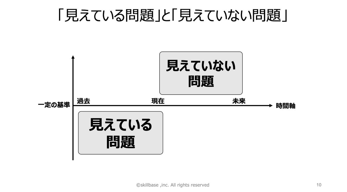ただ、それだけじゃないです。現在から未来において、「別に悪い状況ではないけど、もっとこんなふうに良くなれるよね」。これが、見えていない問題を発見するということです。