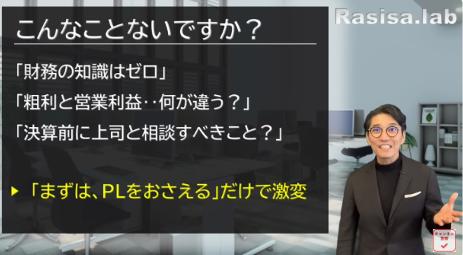 ・「財務は難しい」と敬遠されがちですが、管理職はまずPL(損益計算書)について理解することが、財務リテラシーを上げる第一歩です。