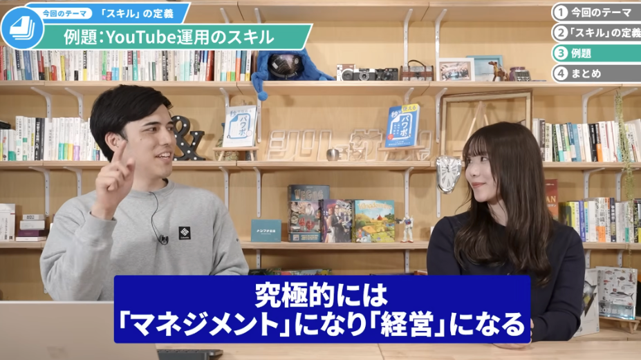豊間根:YouTubeの動画をどうやって作るかというスキルは、確かにPremiere Proとかを触れないとできないんだけども、じゃあ会社の経営をどうやっていくかって、業界によってもちろんノウハウとか違いはあるんだけど、本質は一緒なんだよね。だから、プロ経営者の人って、ぜんぜん違う会社に行っても成果を出したりするわけですよ。