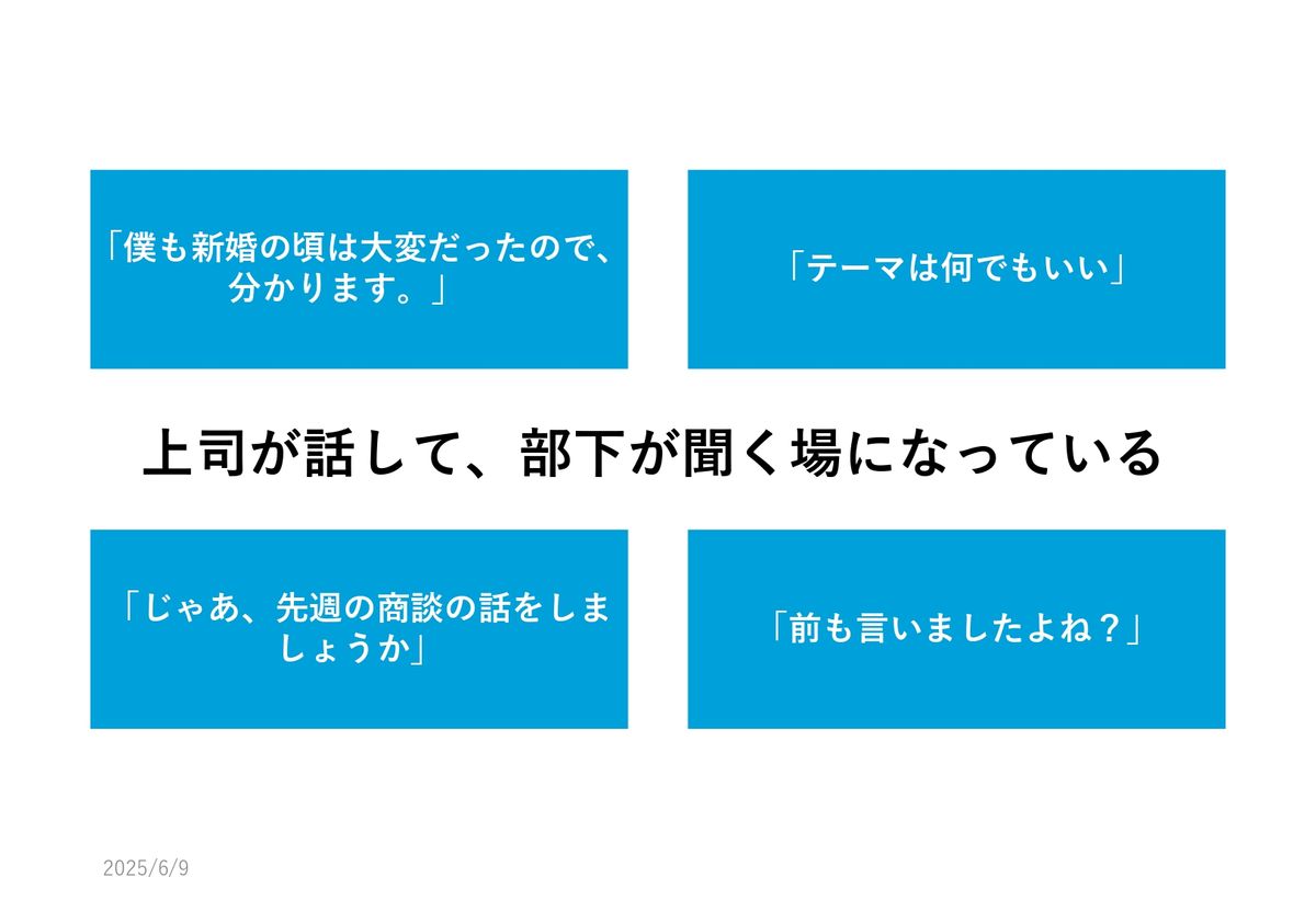 上司が話して、部下が聞く場になっている