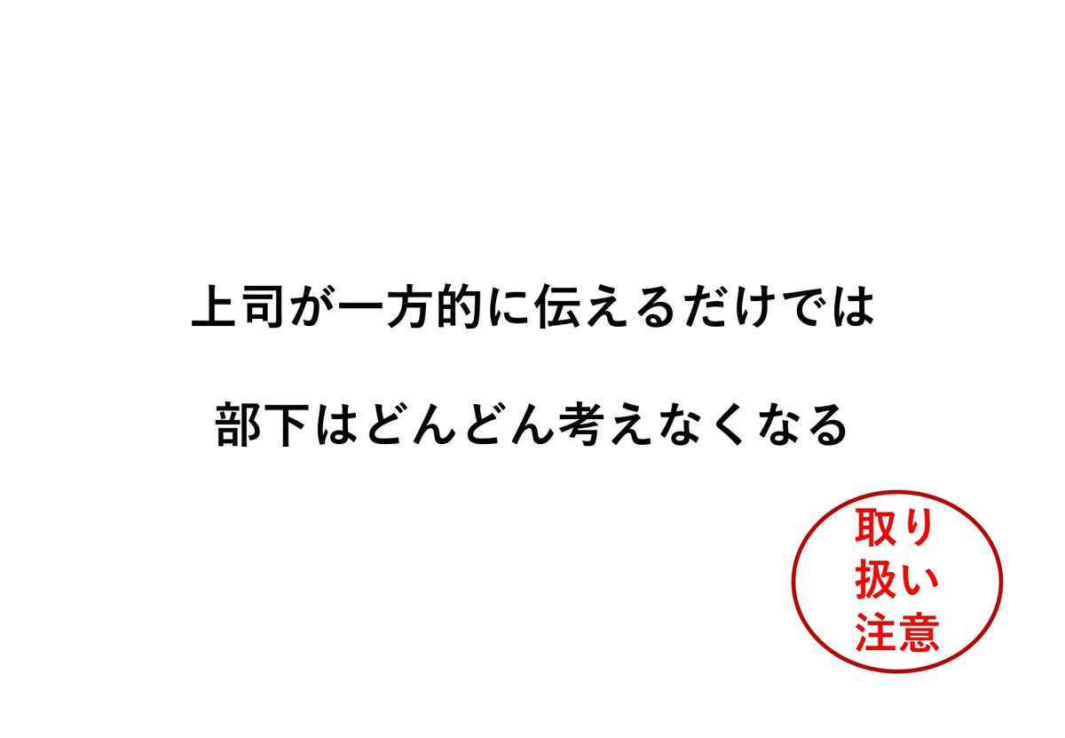 これは取り扱い注意なんですけど、こういったことが続いていくと、結局どんどん部下が考えなくなりますし、形骸化してくる。「早く終わらんかな」という時間になってしまうので、取り扱い注意なんですね。