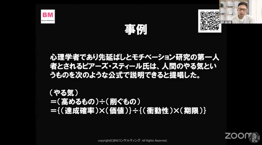 深沢:まぁ、私は素人ですけど、個人的にはしっくりきました。さらにですね、このスティールさん、おもしろいことを考えるなぁ。「やる気を高めるものは、何と何でできているんだろう?」って、考えているんですって。まぁ、書いてあるとおり達成確率と価値、その相乗効果と考えているんですね。達成確率というのは、達成しやすいかどうかですよね。