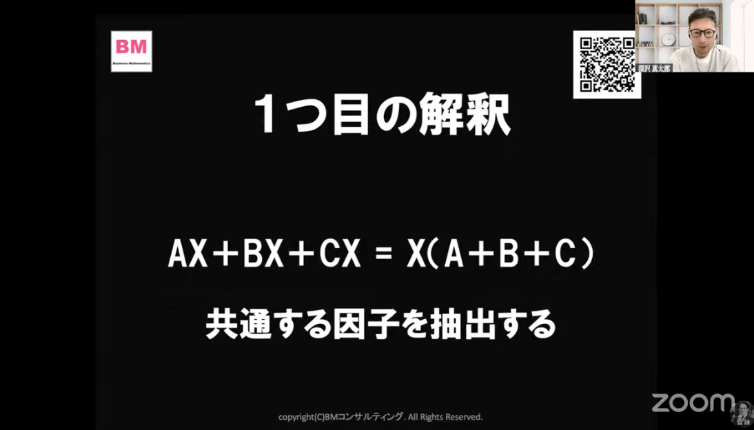 それを抜き出して、物事を捉えていくことは「私たちの日常の中にもあるんじゃないかな」というのは、当たり前のようにやることだと思うんです。実は、これは先ほどとやっていることが同じなんですよね。つまり因数分解。