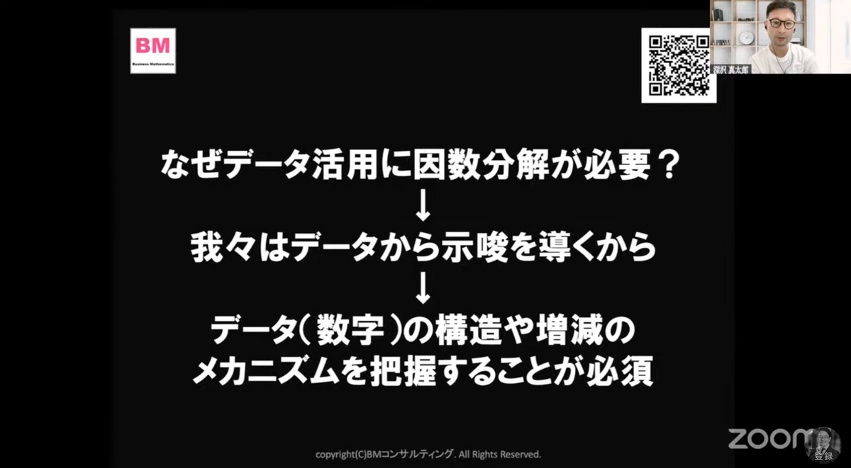 はい、もう前半の内容とつながったと思います。なぜ私が前半で「構造」なんて言葉を使ったのか。だから、マーケターにとって因数分解はとても重要なこと、必要なことなんだということになると思います。