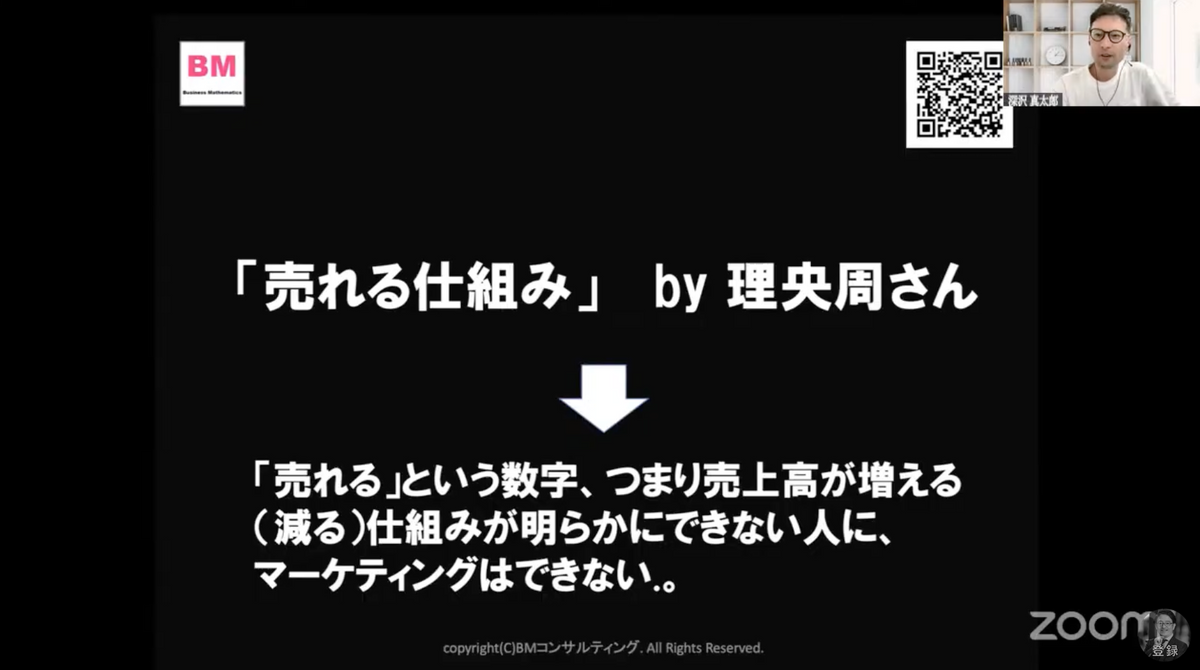 実際、今回このセミナーの告知のランディングページの中にも「売れる仕組み」っていう言葉が入っていました。だから、それを見た時に「あぁ、やはりね」って思いました(笑)。でもそうですよね。マーケティングですからね。「売れる仕組みを作ることがマーケターの仕事だよ」っておっしゃりたいんだと思います。