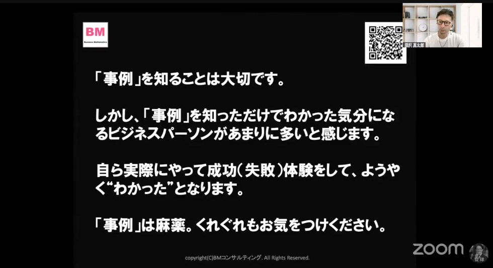 「もっと事例を聞きたいな」っていうのが、たぶんみなさんの感想だったはずなんです。私はあえて、意図的に事例は最小限にしているんですね。意味がないからです。
