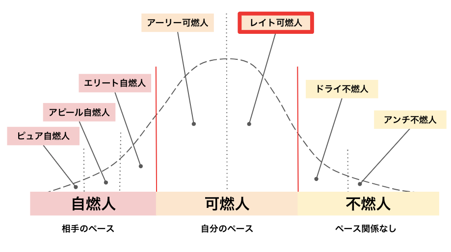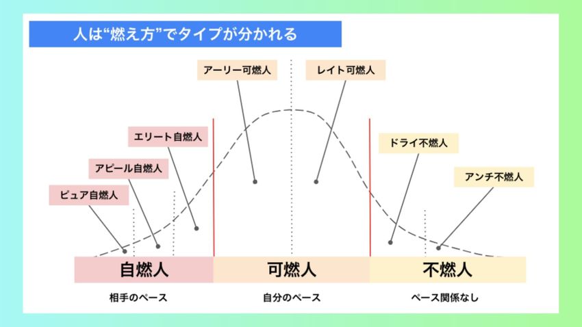 自燃人、可燃人、不燃人の3つに分けた時に、とにかくほとんどの人が可燃人です。可燃人にとっては何が重要かというと、自分のペースなんですよ。