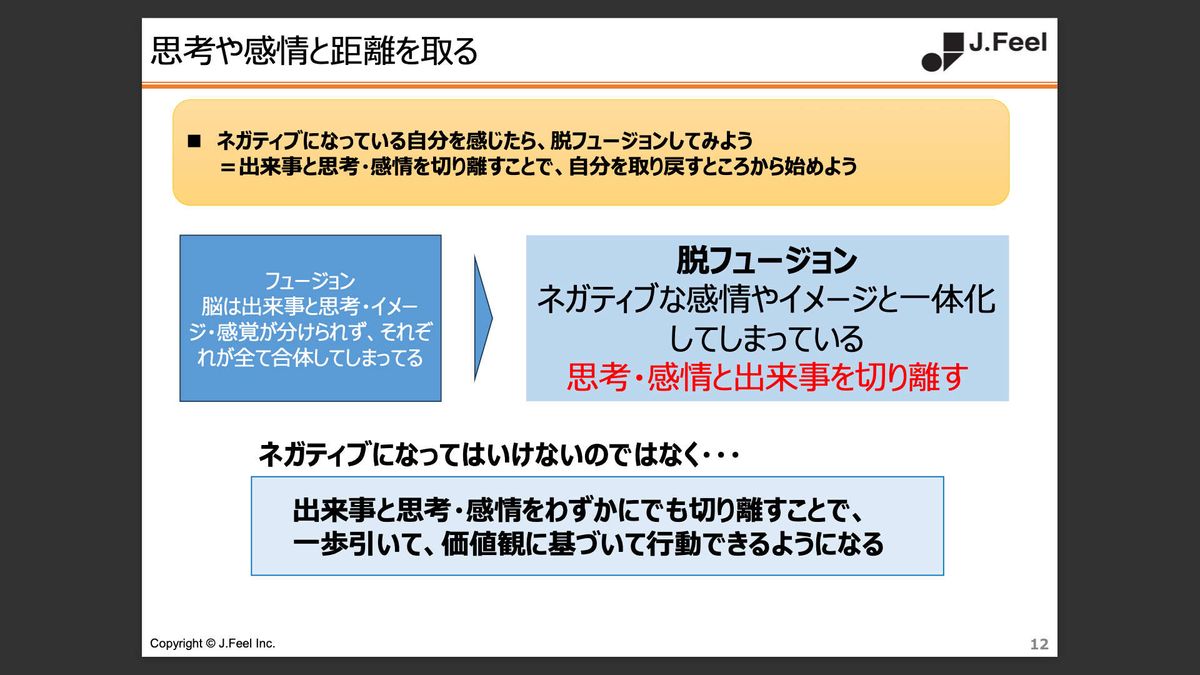 青木:そしてもう1つ。もし自分がネガティブな状態になっていると気づいたら、「脱フュージョン」をやってみてほしいんです。これは「出来事と思考と感情を切り離す」という意味で、自分自身を取り戻すための大切なワンクッションになります。