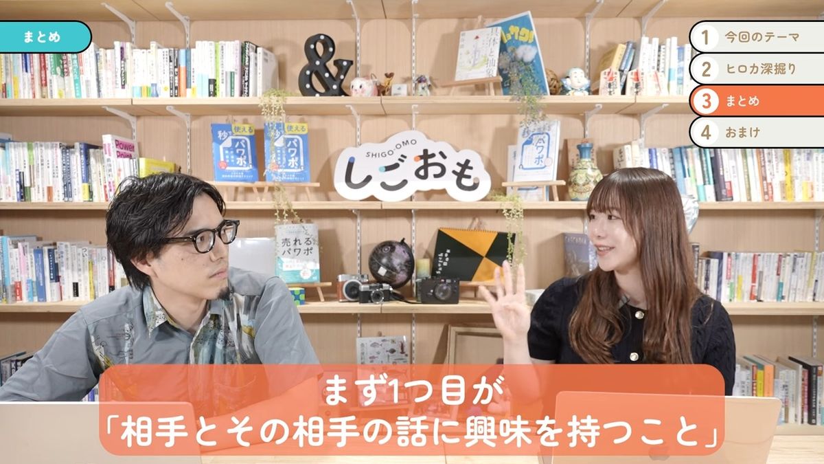 岩本:まず1つ目が、「相手とその相手の話に興味を持つこと」。これがまとめというか、一番重要。
