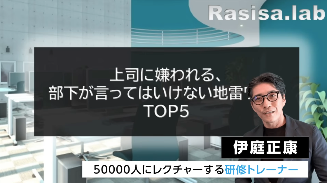 伊庭正康氏:研修トレーナーの伊庭です。よかれと思って言った発言が上司の地雷を踏んでしまうことはよくありますね。今日のテーマはこちらです。上司に嫌われる、絶対に言ってはいけない地雷ワードTOP5を紹介していきます。