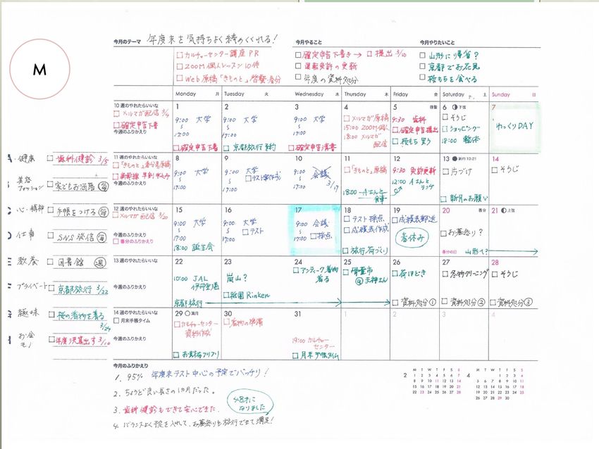 あとは、やりたいことができた時。はい、これも続けて来ていますね。あとは、「今年叶えたい」と絞った夢への行動ができた時、「マンスリーページを使いこなしているな」と思えますかね?