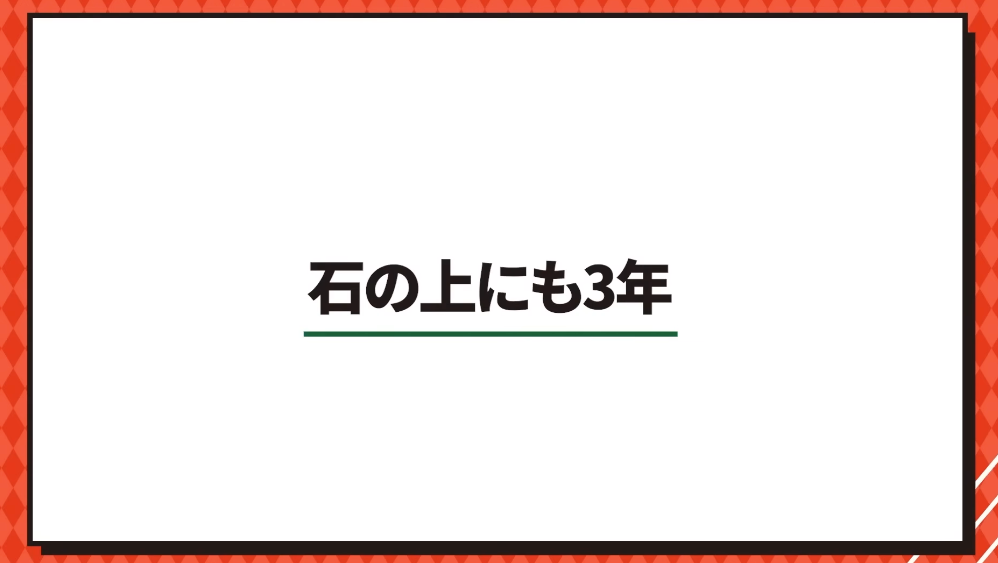 そうすると、例えば「石の上にも3年」というのは、3年経験すればわかることがあるよと、何百年前から言われていますよね。なのに「今のあなたが突然、それを打ち破るような、すごい理屈を出せるんですか?」というと、まぁまぁ難しいよね。3年ぐらいやると、絶対にそれを越えるものって得られるねって思います。