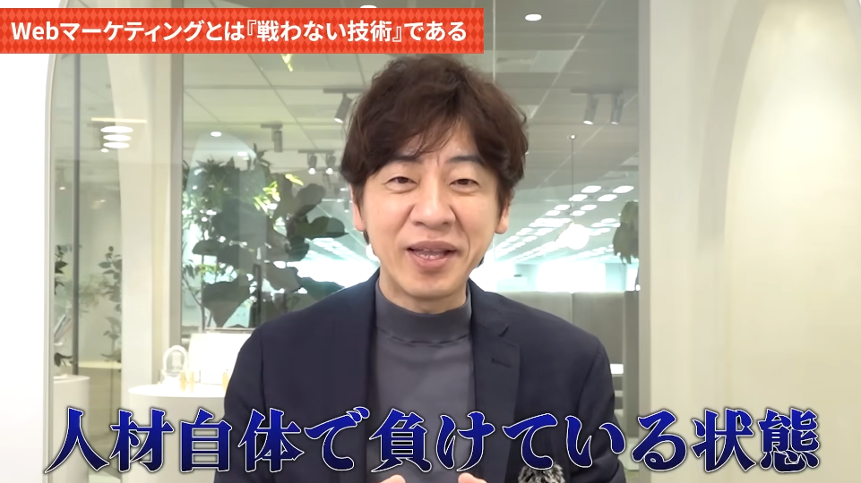木下:まず、Webマーケティングの技術とは、「戦わない技術である」がベースになっています。本来マーケティングというものは、多くの人が「競合と戦う武器だ」と思っている人が多いと思うんですけども、実際にはそうではありません。そもそもマーケティングとは戦わない技術なんですね。
